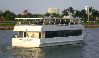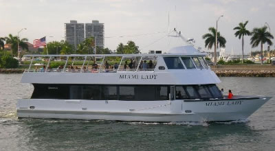 MIAMI LADY is a 74ft elegant party yacht offering the best value of any boat in her class. Two levels with private bar, DJ area, spacious open deck spacing and new décor, tables and chairs. The all inclusive packages include open bar and a variety of buffet style meal presentations. A great vessel for guest seeking value and great service.